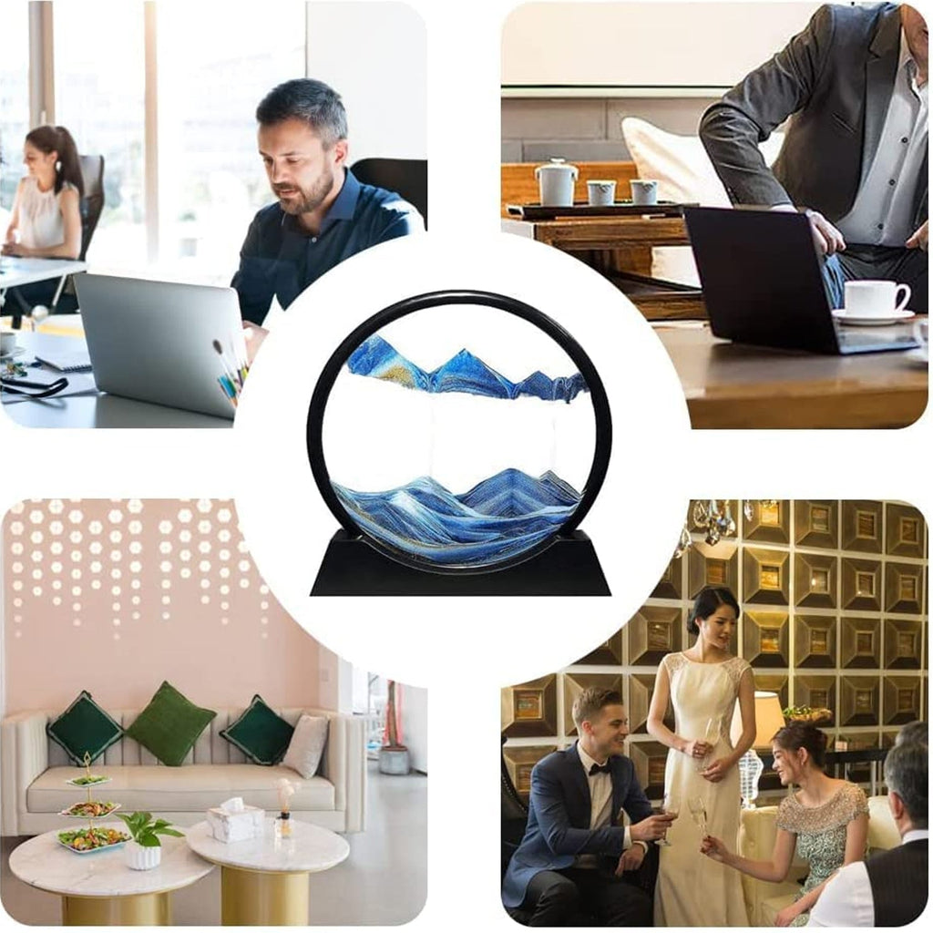 • Magnificent Dynamic Sands cape-The dynamic sand picture can be rotated freely in 360, every time you turn it, the sand starts to move and slowly form deserts, oceans, mountains. You will be happy to enjoy the falling sand and the different landscape scenes, which will make you feel very relaxed and calm.